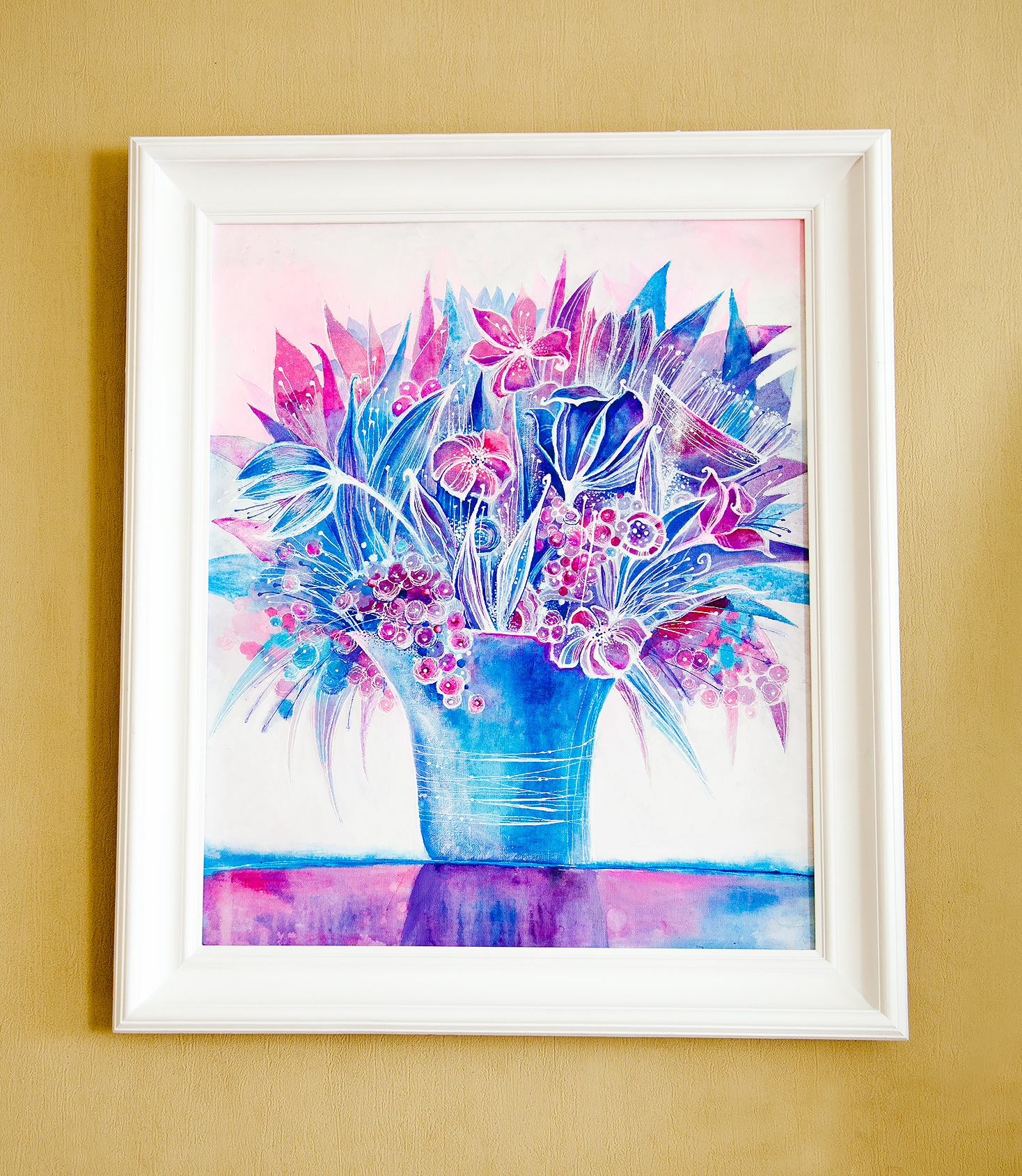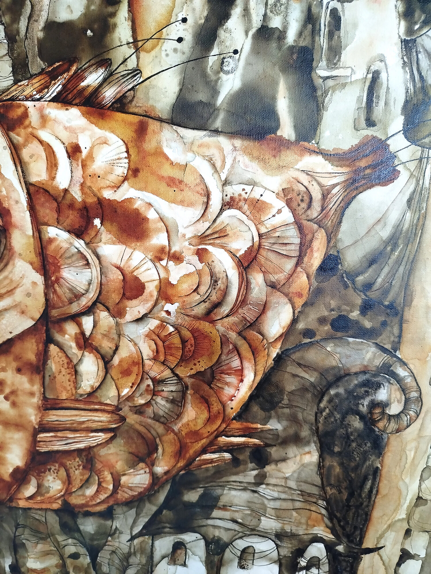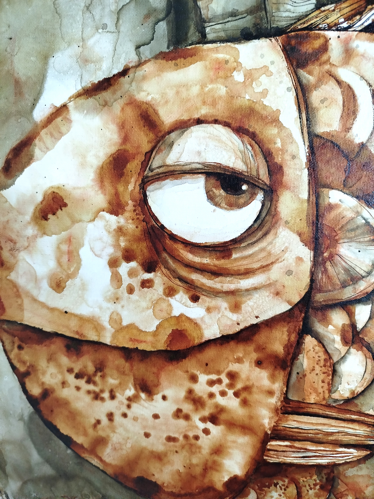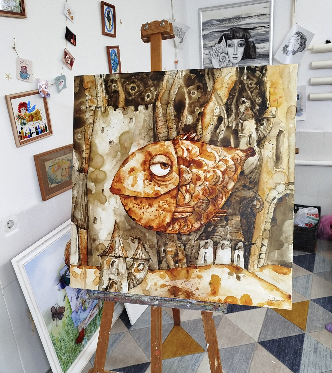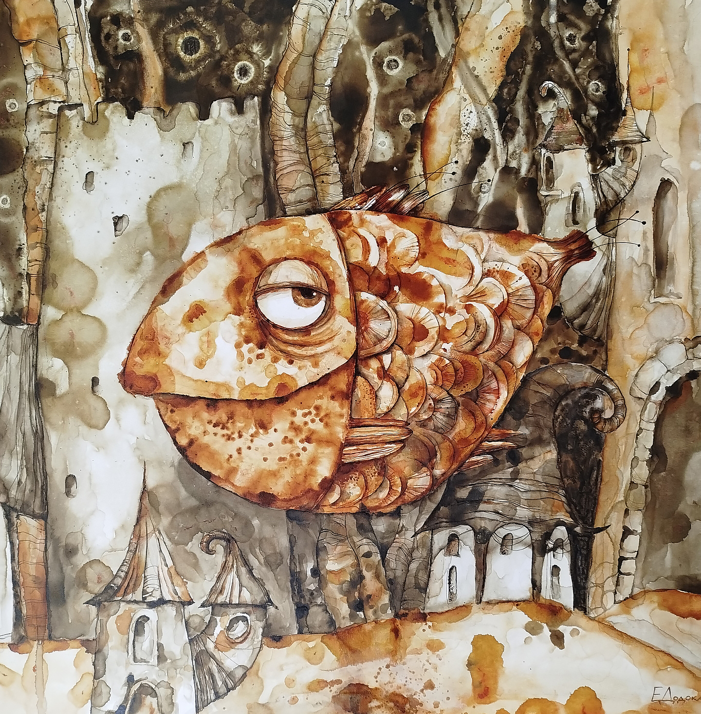 100х100 см Холст, акриловая тушь. Картина написана акриловой тушью в акварельной технике, с добавлением графики. Очень красивые разводы. Настроение героини - ироничное, позитивное. В большенстве случаев поднимает настроение и вызывает улыбку).