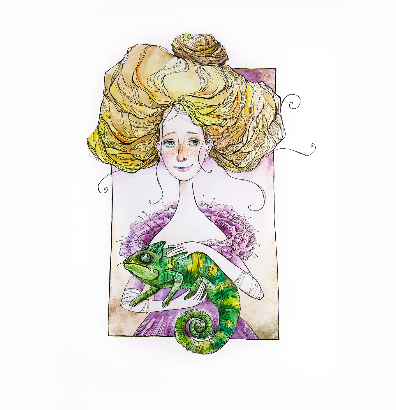 Акварель, размер А3 Когда рисовала набросок, думала, что у этой девушки должен быть необычный питомец. Что питомец - это как бы ее интересы, её характер, её индивидуальность. Придумала - хамелеон! Сегодня показываю дочери, она говорит: "Мама, ты Рапунцель рисовала?" 😬.... И точно, смотрю - Рапунцель... Ну и ладно. Значит так надо)))