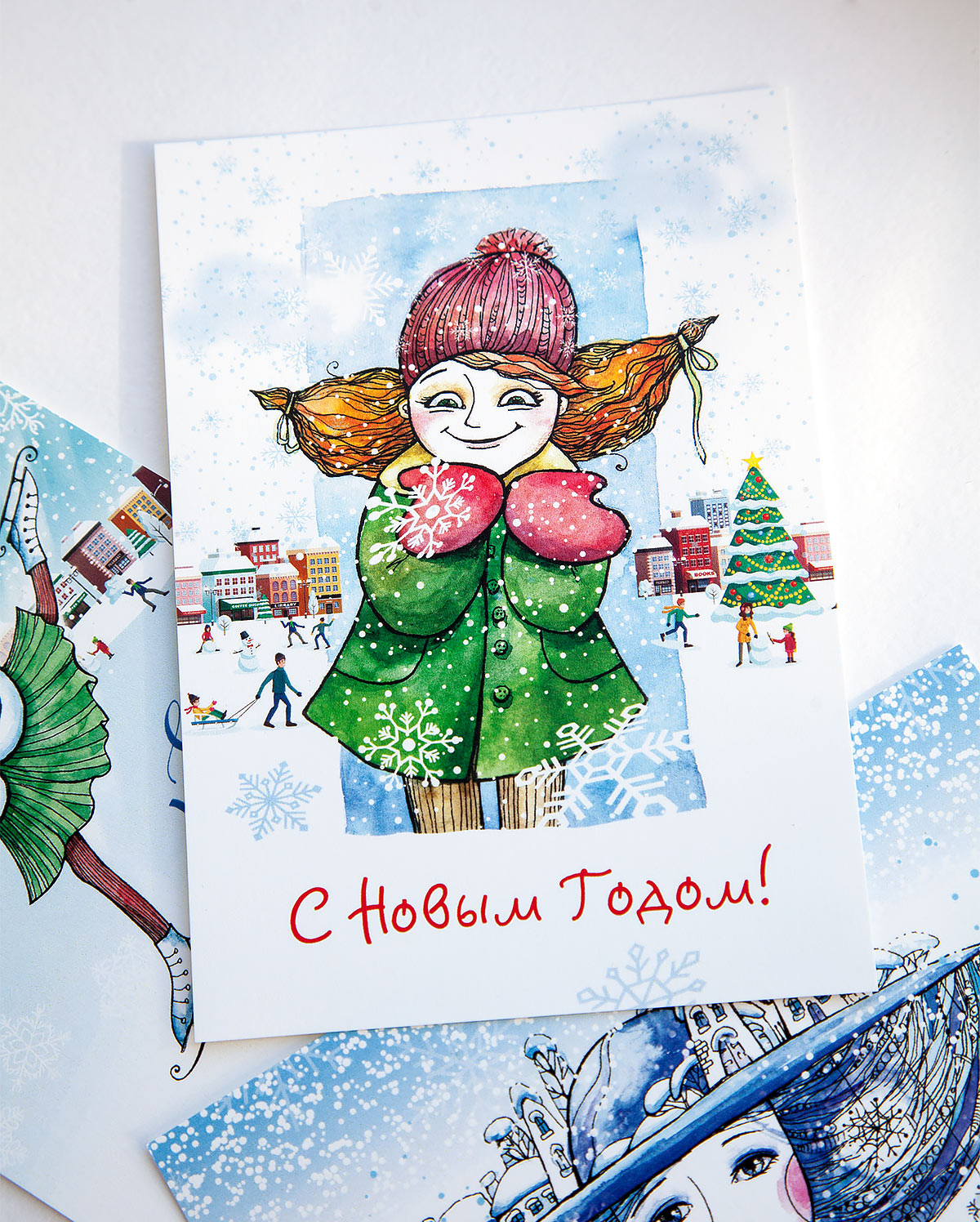 Открытка напечатана на плотном матовом картоне. Формат А6 (105 x 148 мм)