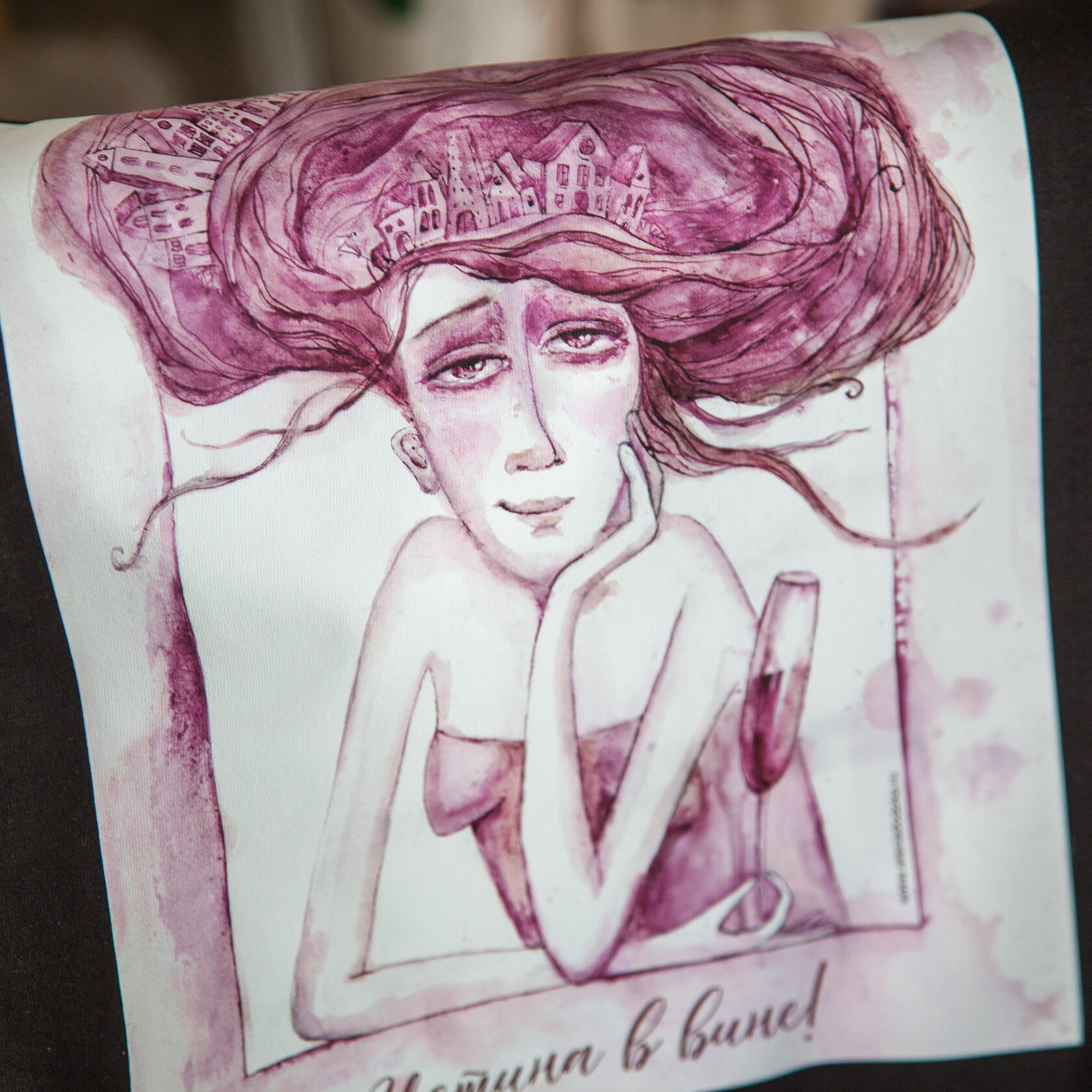 Футболка женская оверсайз (хлопок 100%) с оригнальным принтом, нанесенным на ткань способом DTF печати. Цвет бордовый. В продаже размер L. Если вам нужен другой размер или это изображение вы хотите увидеть на другом цвете футболки, пишите мне — все возможно.