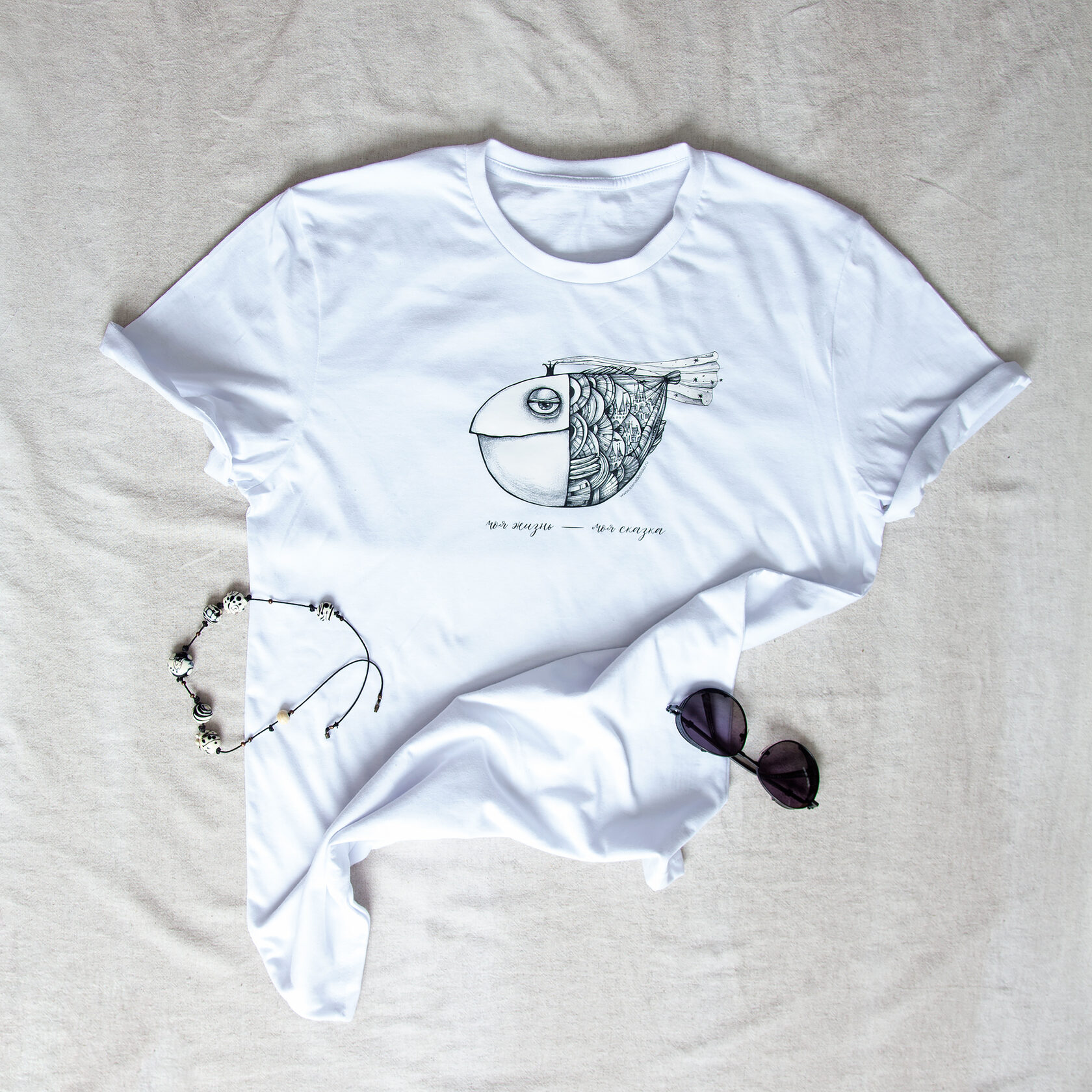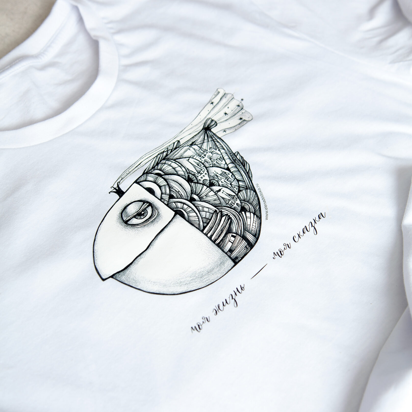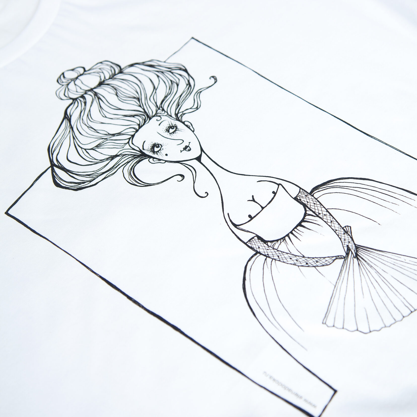Футболка женская оверсайз (хлопок 100%) с оригнальным принтом, нанесенным на ткань способом DTF печати. Цвет белый. В продаже размер L. Если вам нужен другой размер или это изображение вы хотите увидеть на другом цвете футболки, пишите мне — все возможно!