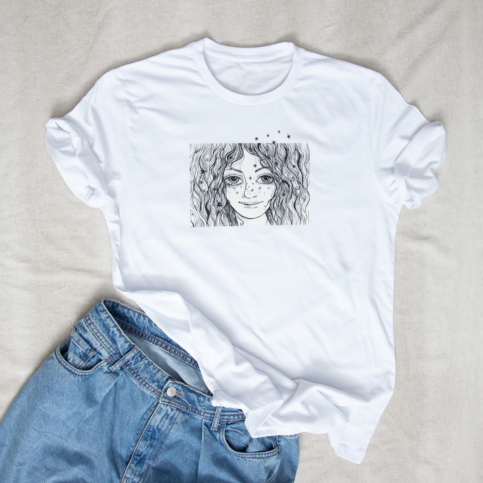 Футболка женская оверсайз (хлопок 100%) с оригнальным принтом, нанесенным на ткань способом DTF печати. Цвет белый. В продаже размер L. Если вам нужен другой размер или это изображение вы хотите увидеть на другом цвете футболки, пишите мне — все возможно.